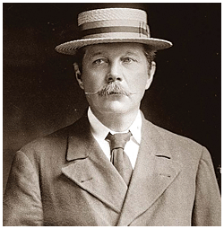 to life in The Hound of the Baskervilles (1901). Doyle died of a